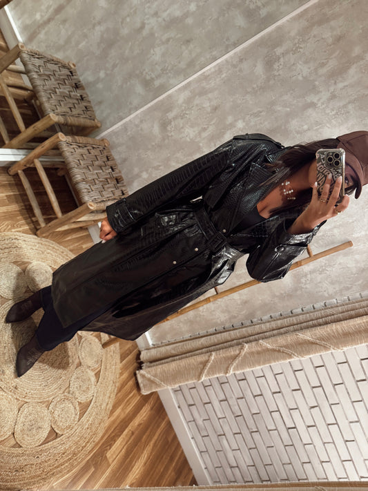 Gabardine em Napa Preta com Acabamento Crocodilo- Mochy