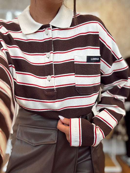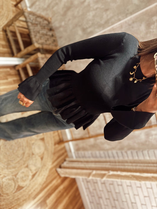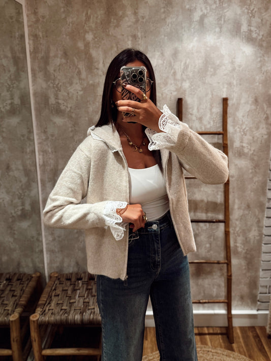 Casaco de malha canelada com detalhe estruturado nas mangas