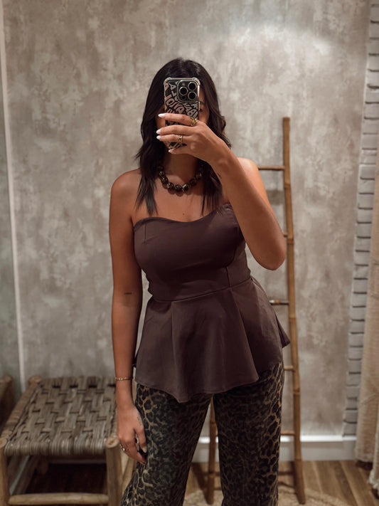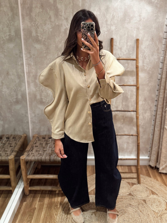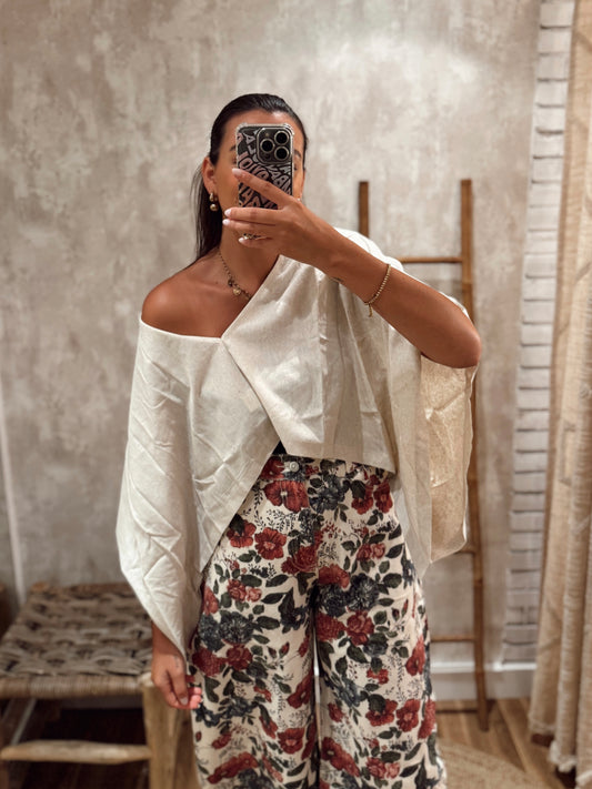 Blusa Mochy larga em linho com corte fluido e mangas amplas - bege