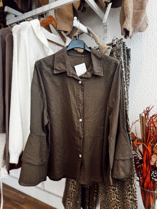 Blusa Mochy larga em linho com corte fluido e mangas amplas - Verde Seco