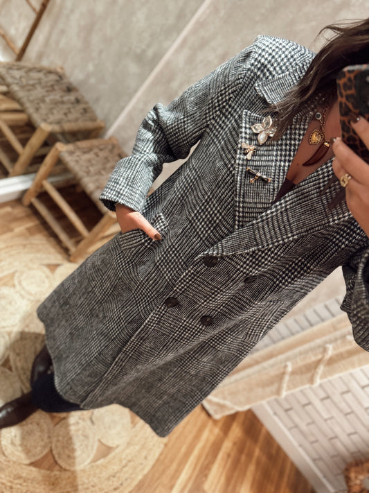 Casaco Clássico em Fazenda com Alfinetes Removíveis - Branco/preto