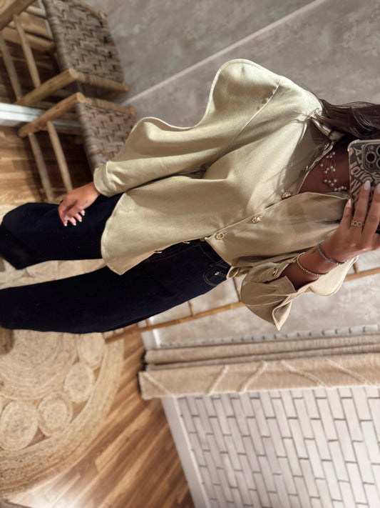 Blusa Mochy larga em linho com corte fluido e mangas amplas - bege