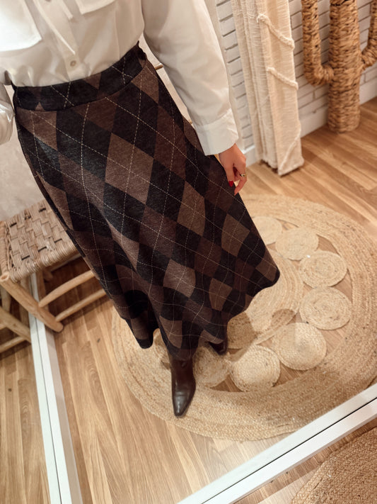 Saia de Lantejoulas com Efeito Assimétrico e Renda