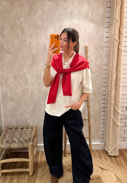 T-shirt – Detalhe Assimétrico Acetinado & Renda
