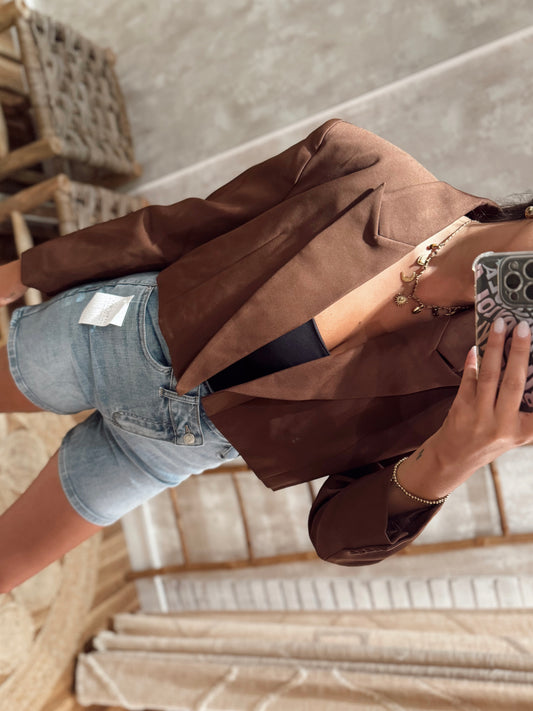 Blazer Curto Mochy – Castanho