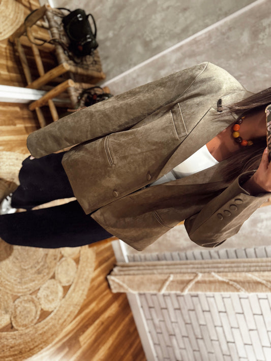 Blazer oversized em pele de pêssego -Verde