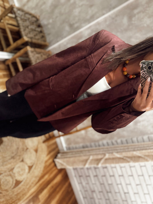 Blazer oversized em pele de pêssego- Bordô