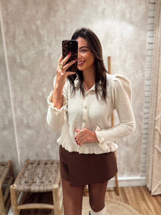 Camisola em Malha com Decote Ombro a Ombro Argyle