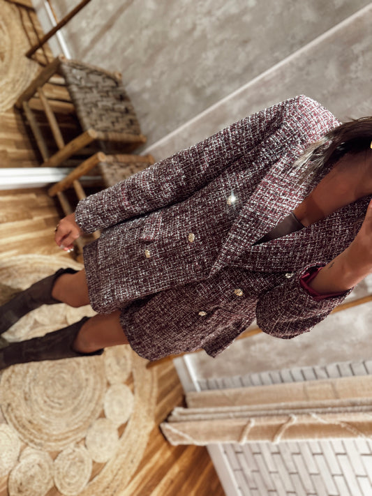 Conjunto estilo tweed composto por blazer e calção- Bordô