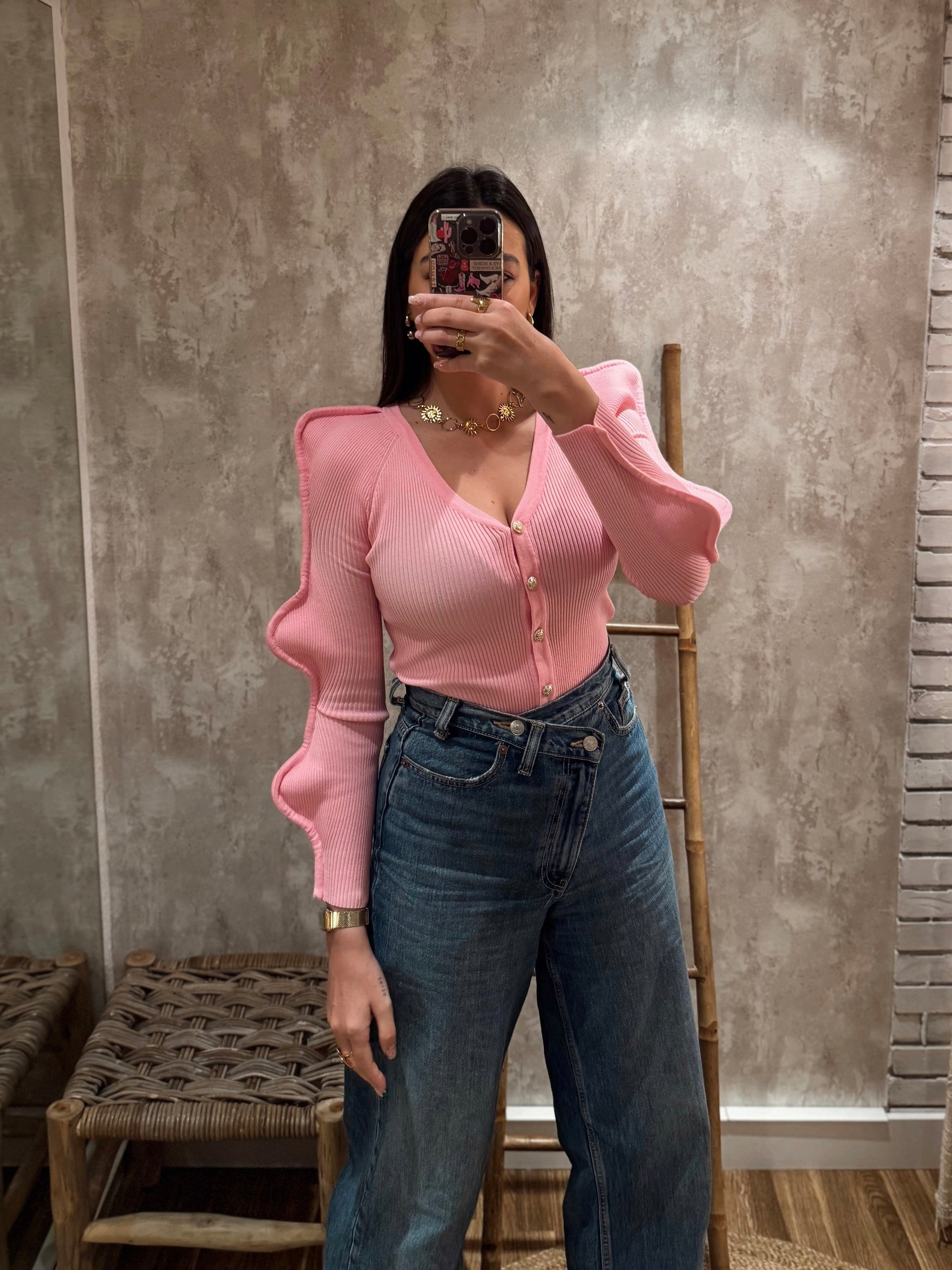 Chaqueta de punto acanalado con detalle de mangas estructuradas - Mochy