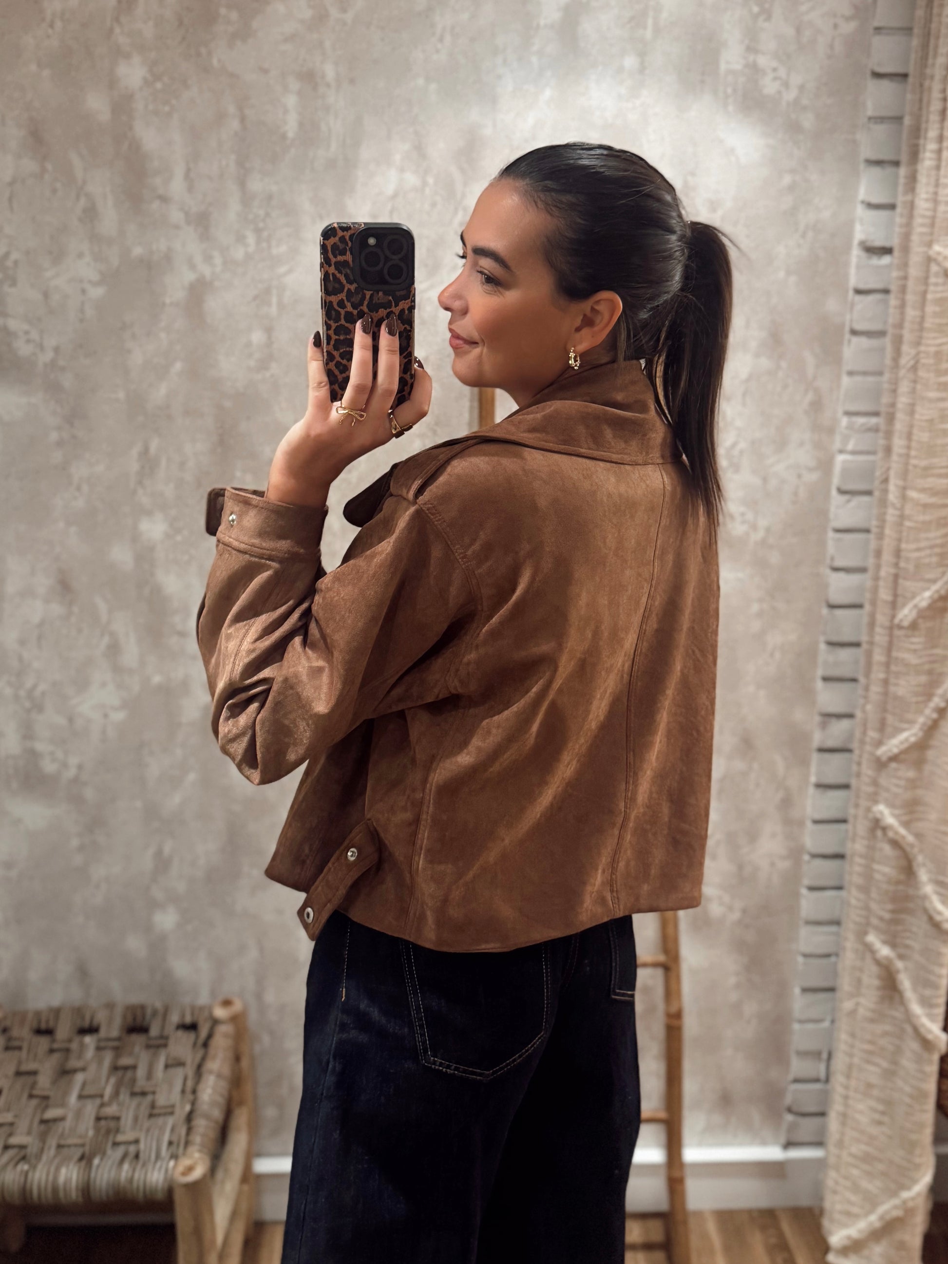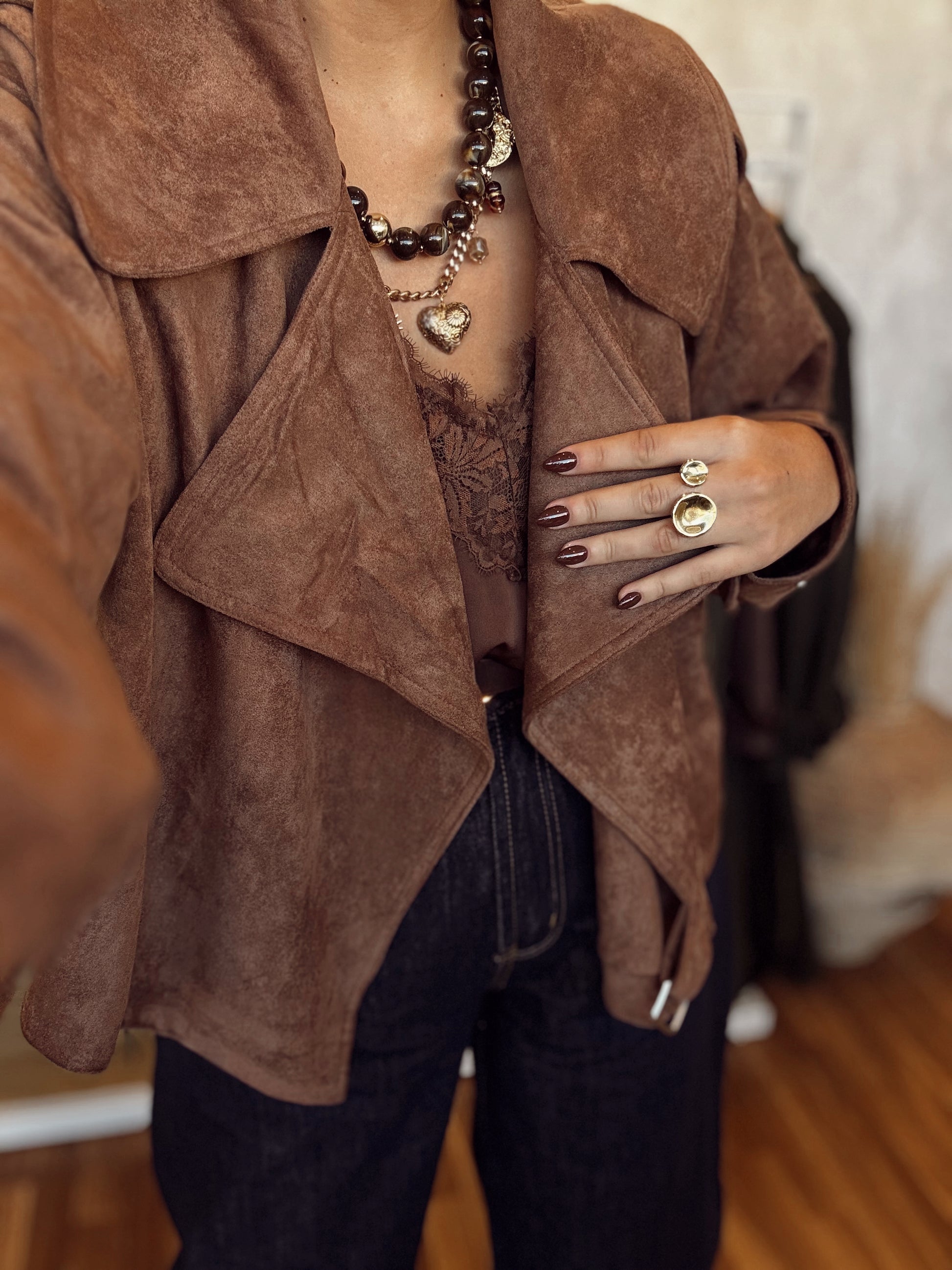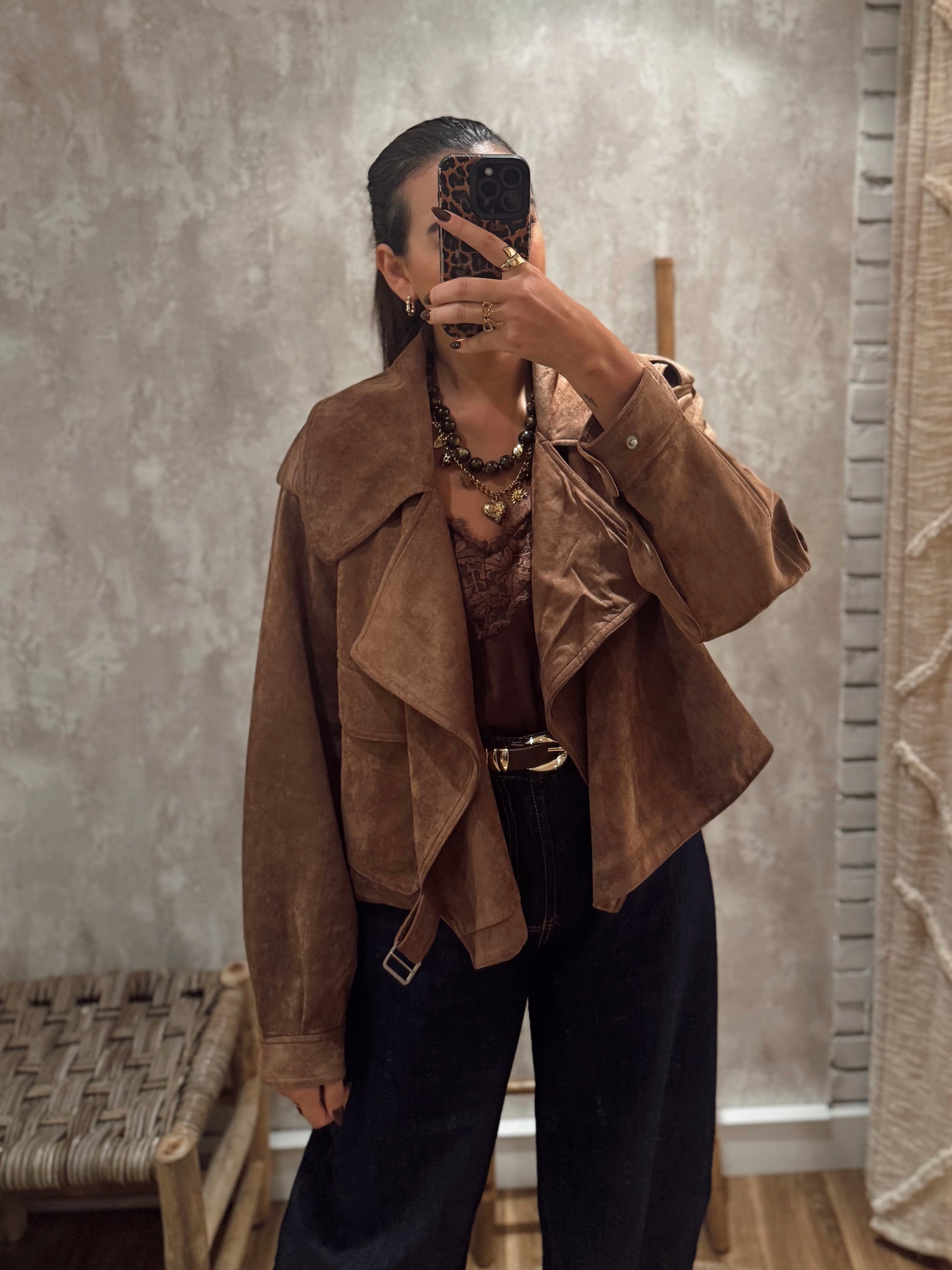 Casaco em camurça com gola larga — um clássico intemporal com um toque moderno ✨