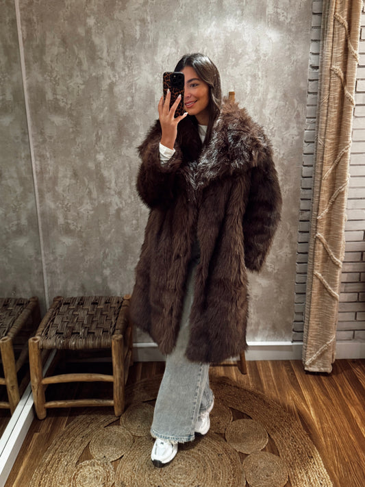 Casaco efeito pele em tom castanho- Mochy