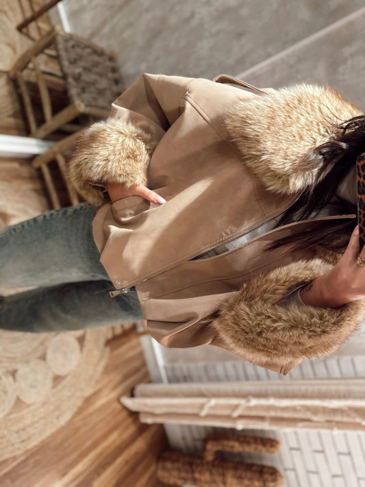 Bomber em camurça oversized -Bege