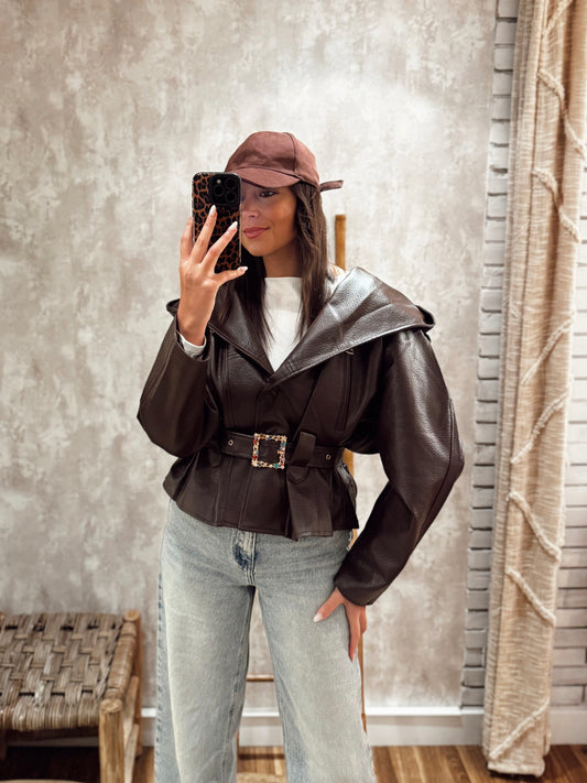 Casaco em Napa castanho c/mangas abalodada
