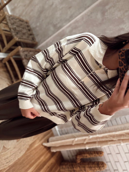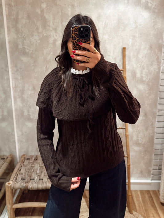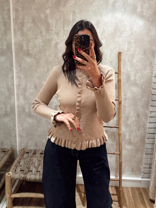 Casaco de malha canelada com detalhe estruturado nas mangas