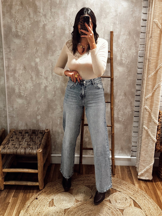 Camisola de malha macia, com detalhe de renda