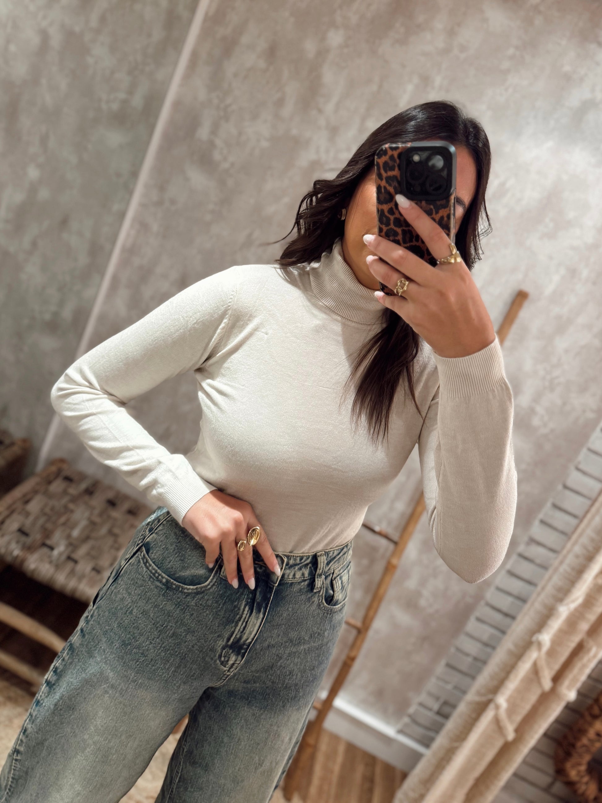 Camisola básica de malha fina, com gola subida e um toque super suave que a torna confortável para usar o dia todo. O corte é justo o suficiente para assentar bem no corpo, mas sem apertar, ficando perfeita para usar sozinha ou como camada por baixo de casacos, coletes ou camisas. Uma peça simples, prática e essencial em qualquer armário — e disponível em várias cores para combinar com tudo.