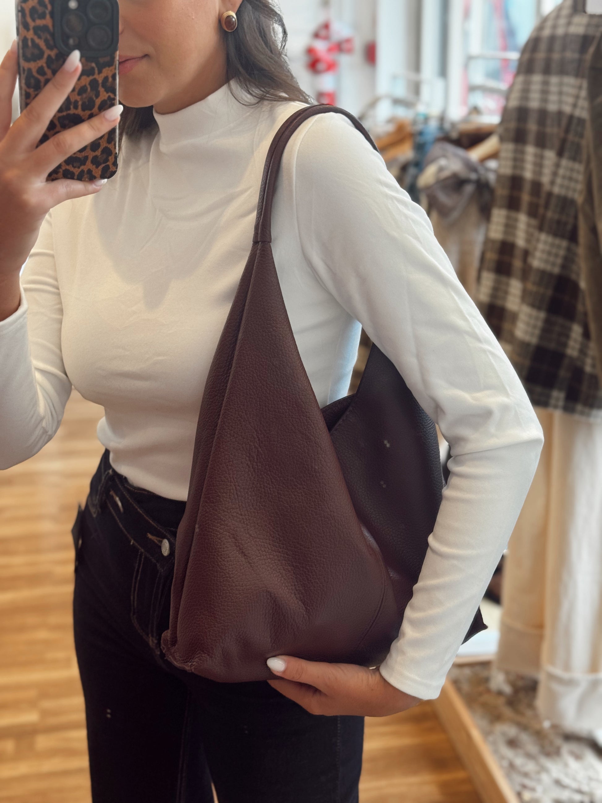Malas em pele com formato de saco ao ombro, super práticas e macias ao toque. Têm fecho interior para maior segurança e um design minimalista que combina com qualquer look do dia-a-dia. Modelo confortável de usar ao ombro e com ótima capacidade.