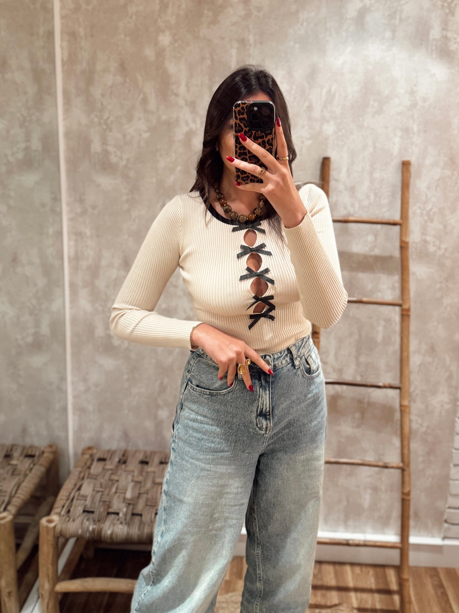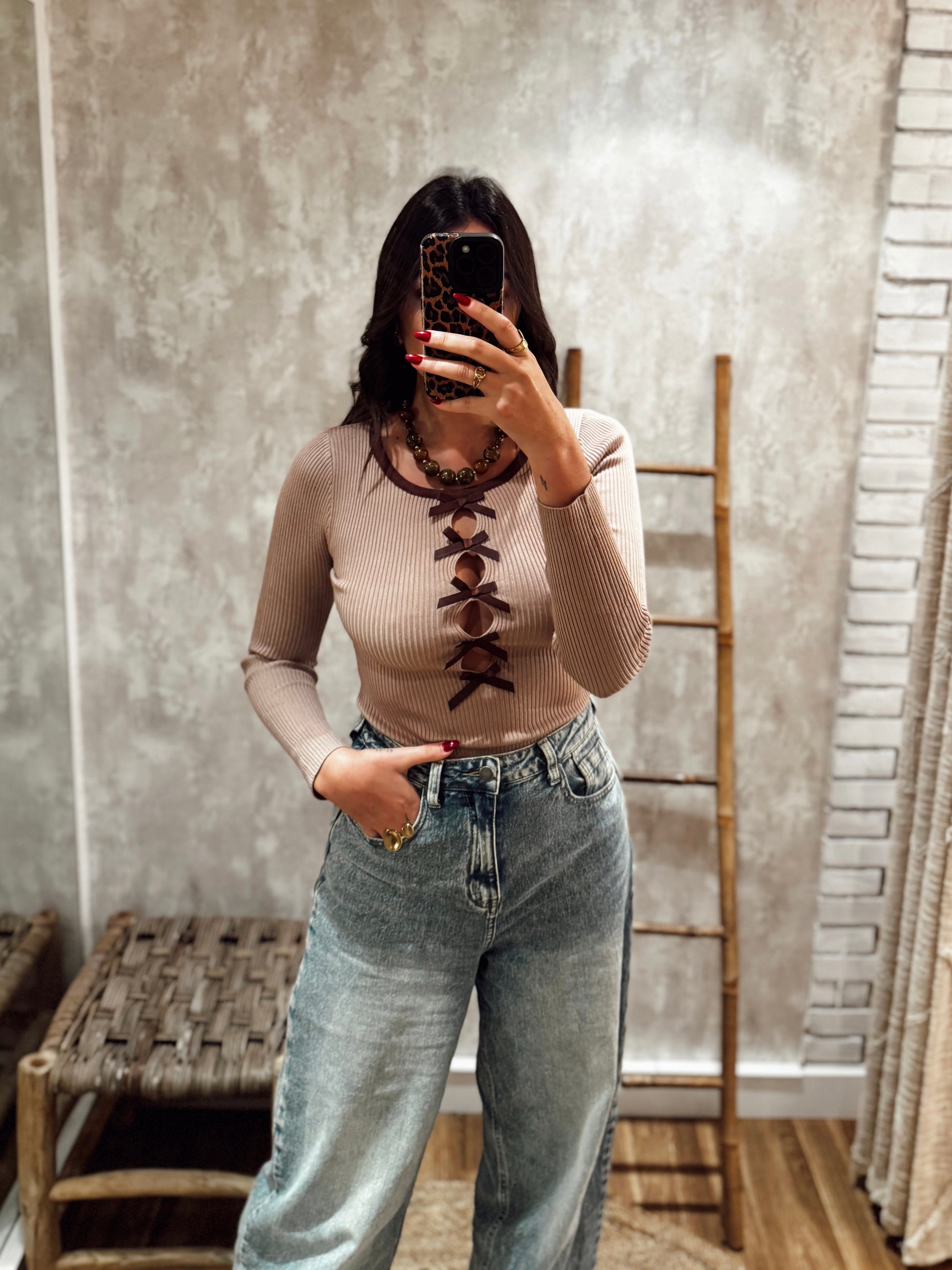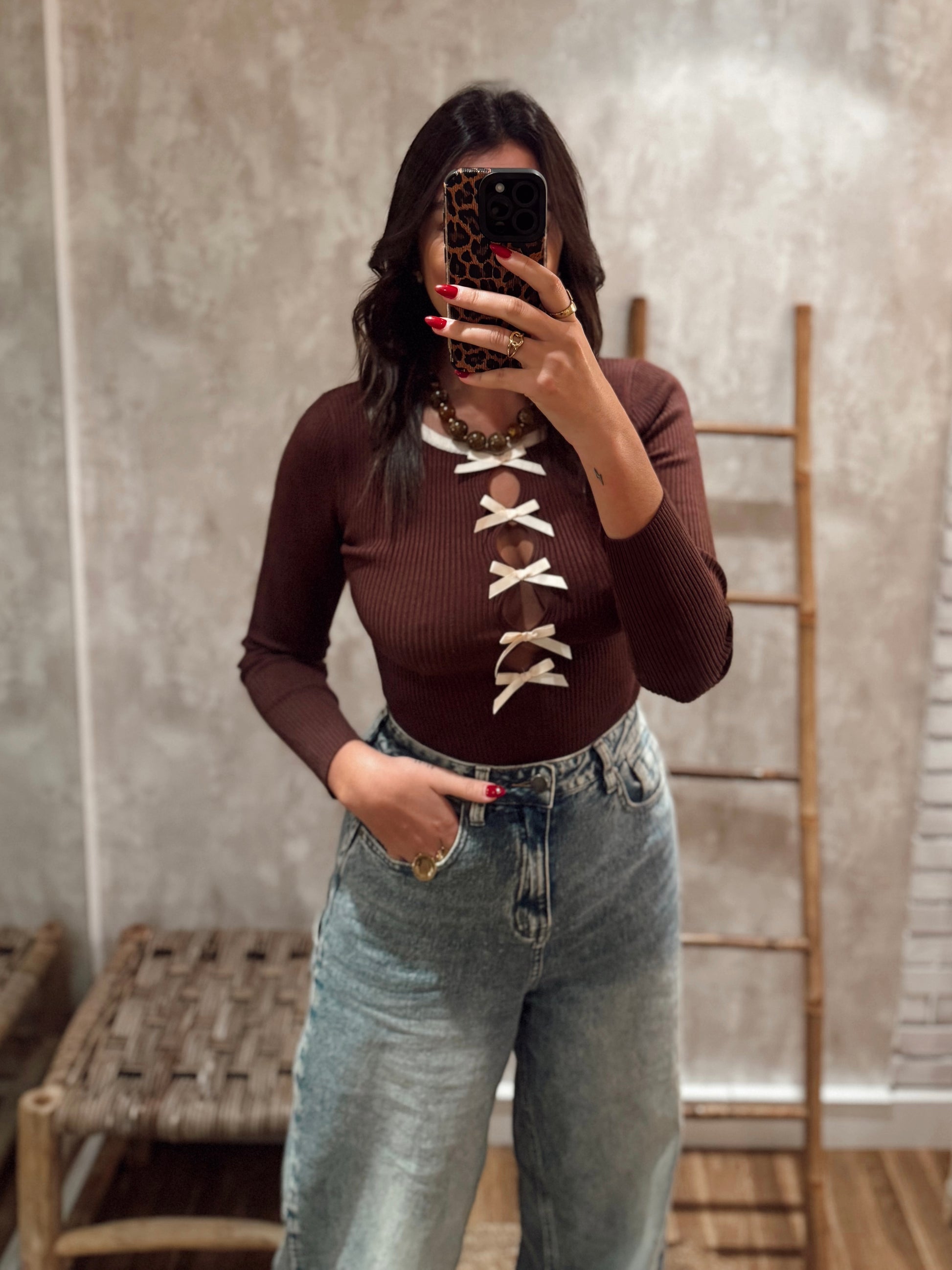 Body em malha canelada c/laços