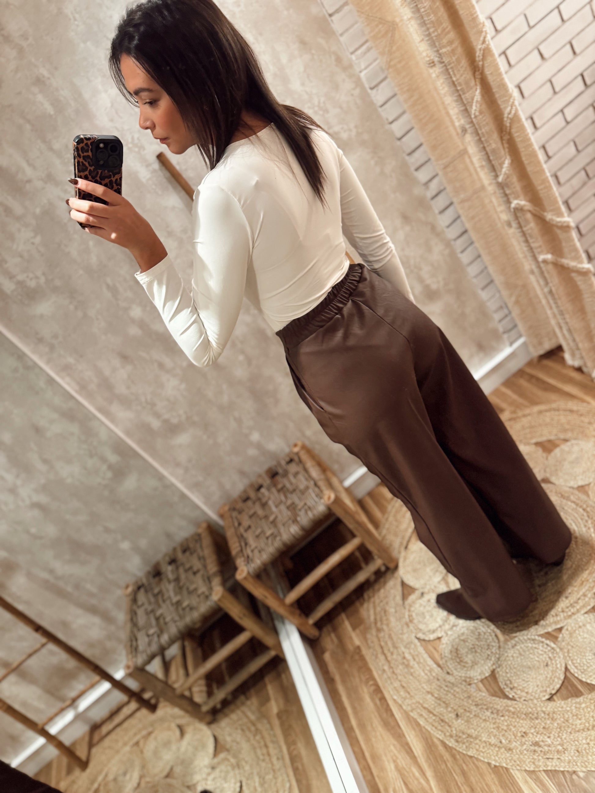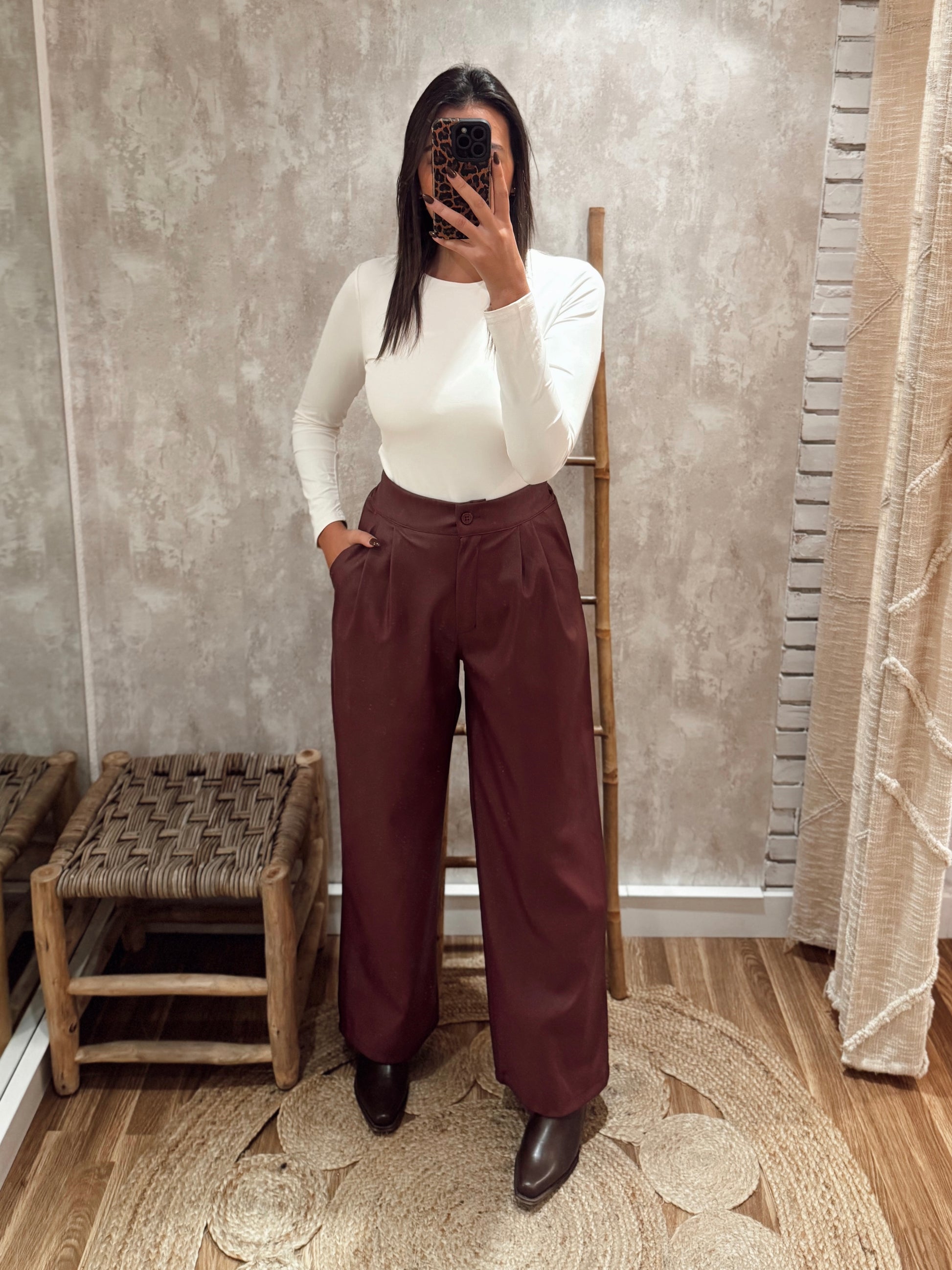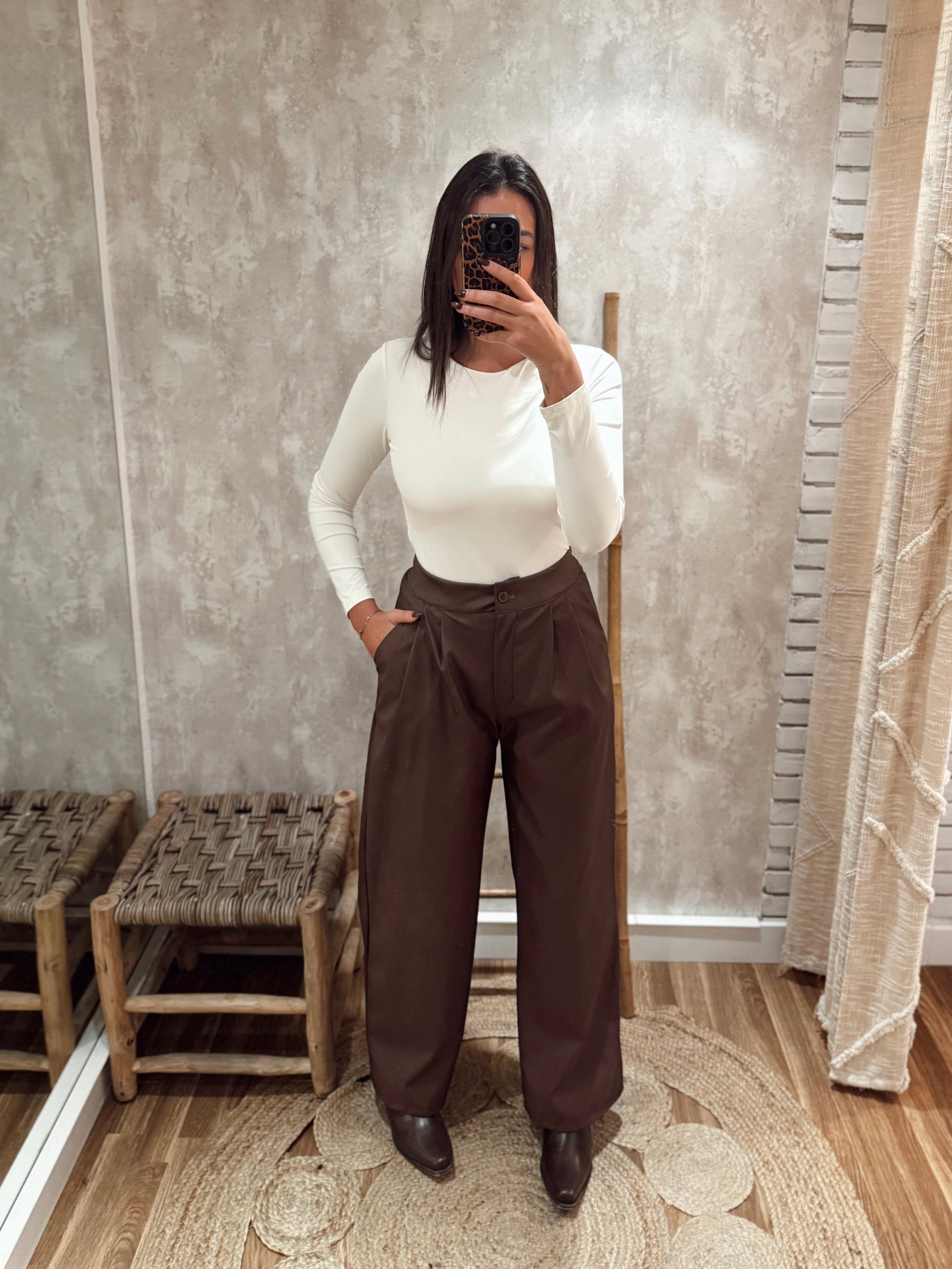 Possuem cintura média, fecho frontal e bolsos laterais, tornando-se uma opção elegante e versátil — perfeitas tanto para conjugar com camisas, como com malhas ou bodys.