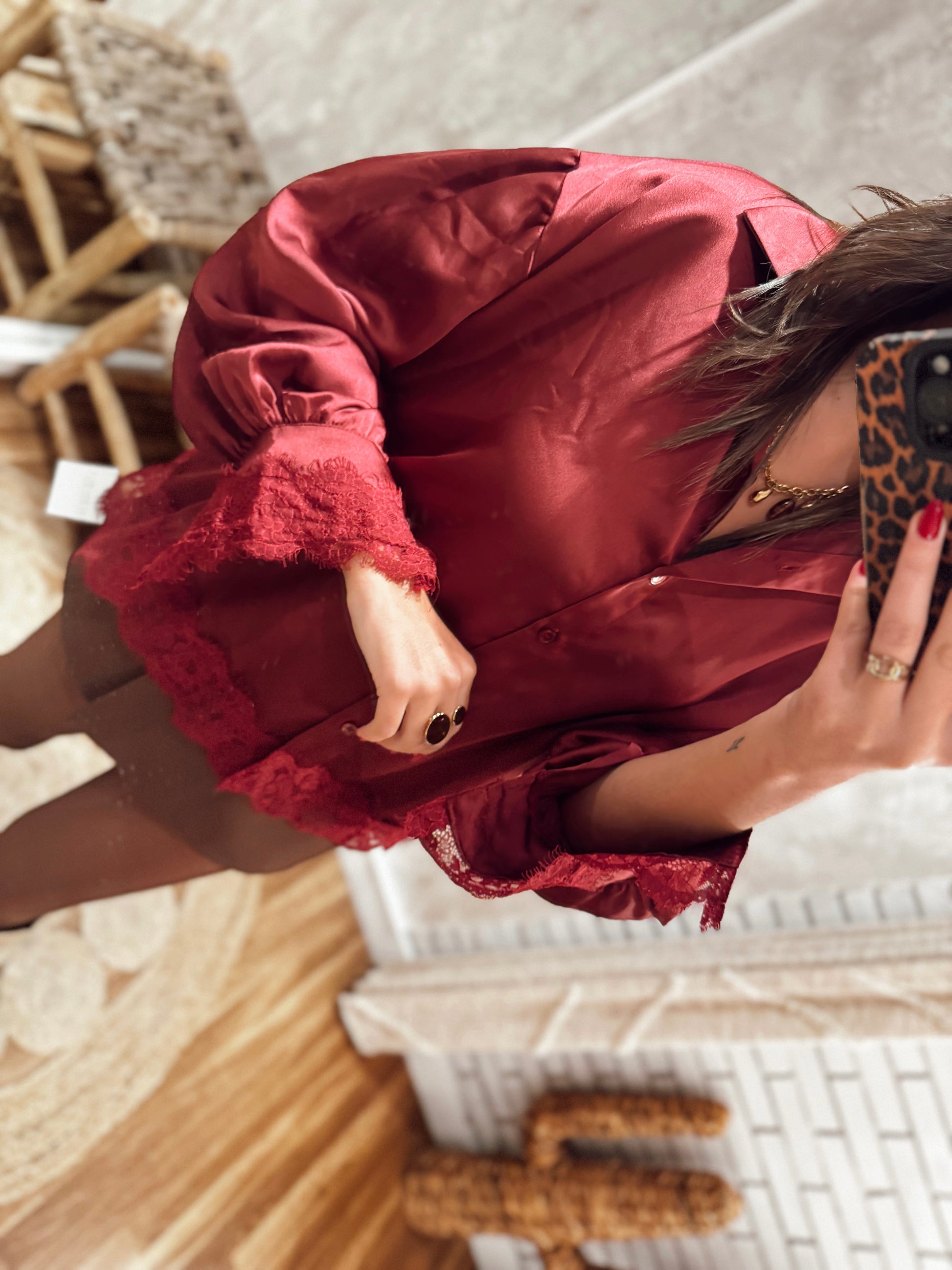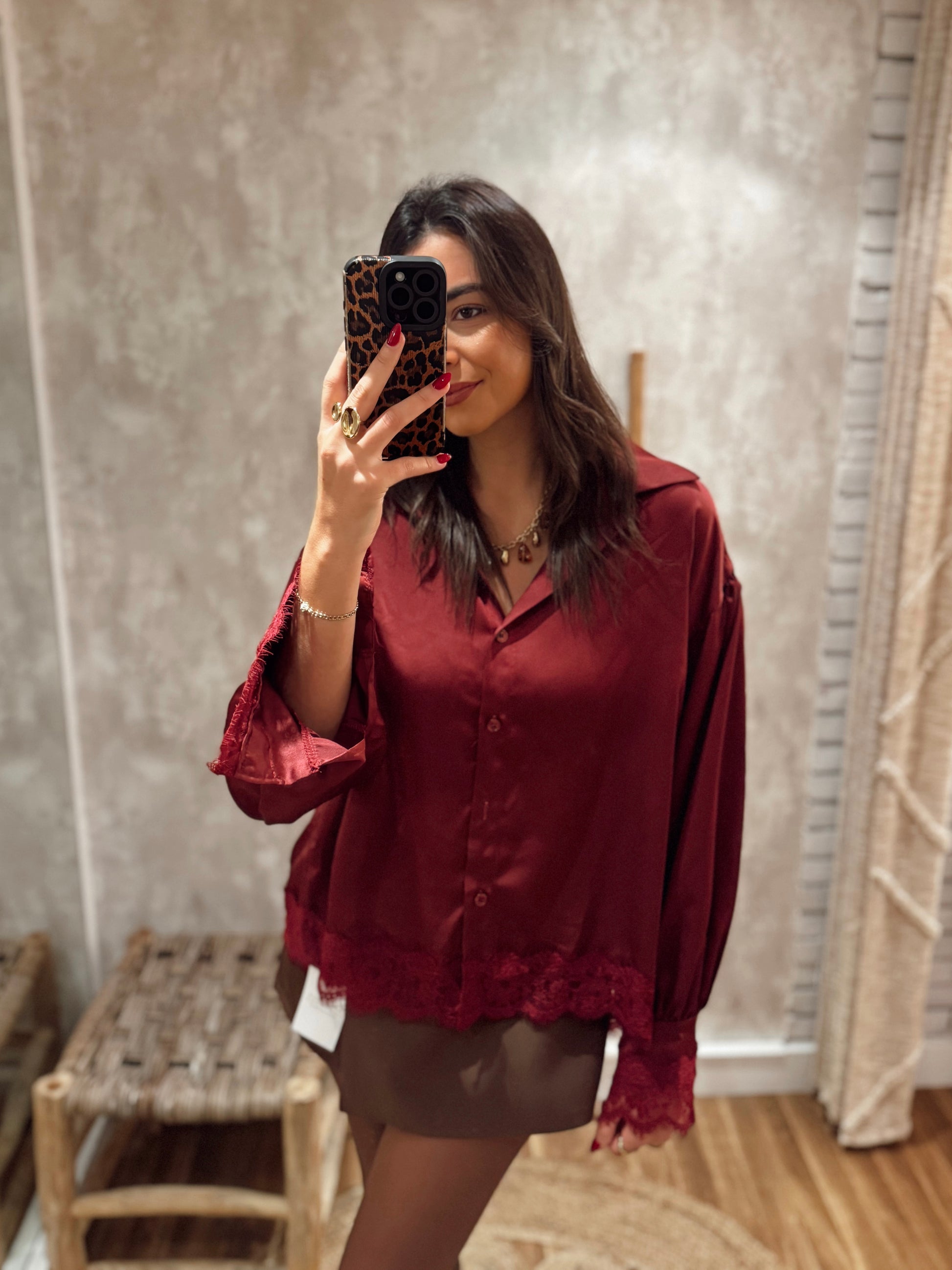 Camiseiro acetinado de toque suave, com aplicação de renda nos punhos e na barra. Uma peça feminina e elegante, perfeita para criar looks mais sofisticados ou para elevar coordenados simples. Disponível em várias cores.