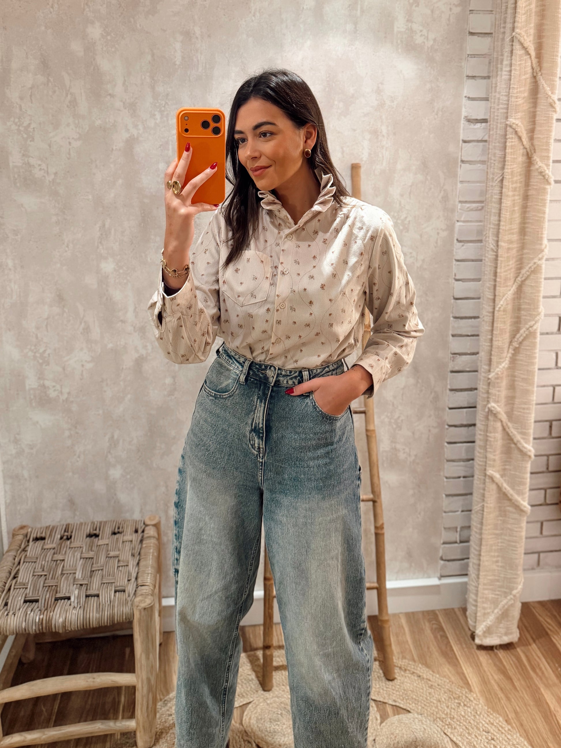 Modelo clássico com abertura frontal em botões, gola simples e mangas compridas com punho abotoado. Um essencial fácil de conjugar, tanto com ganga como com peças mais elegantes, perfeito para looks do dia a dia.