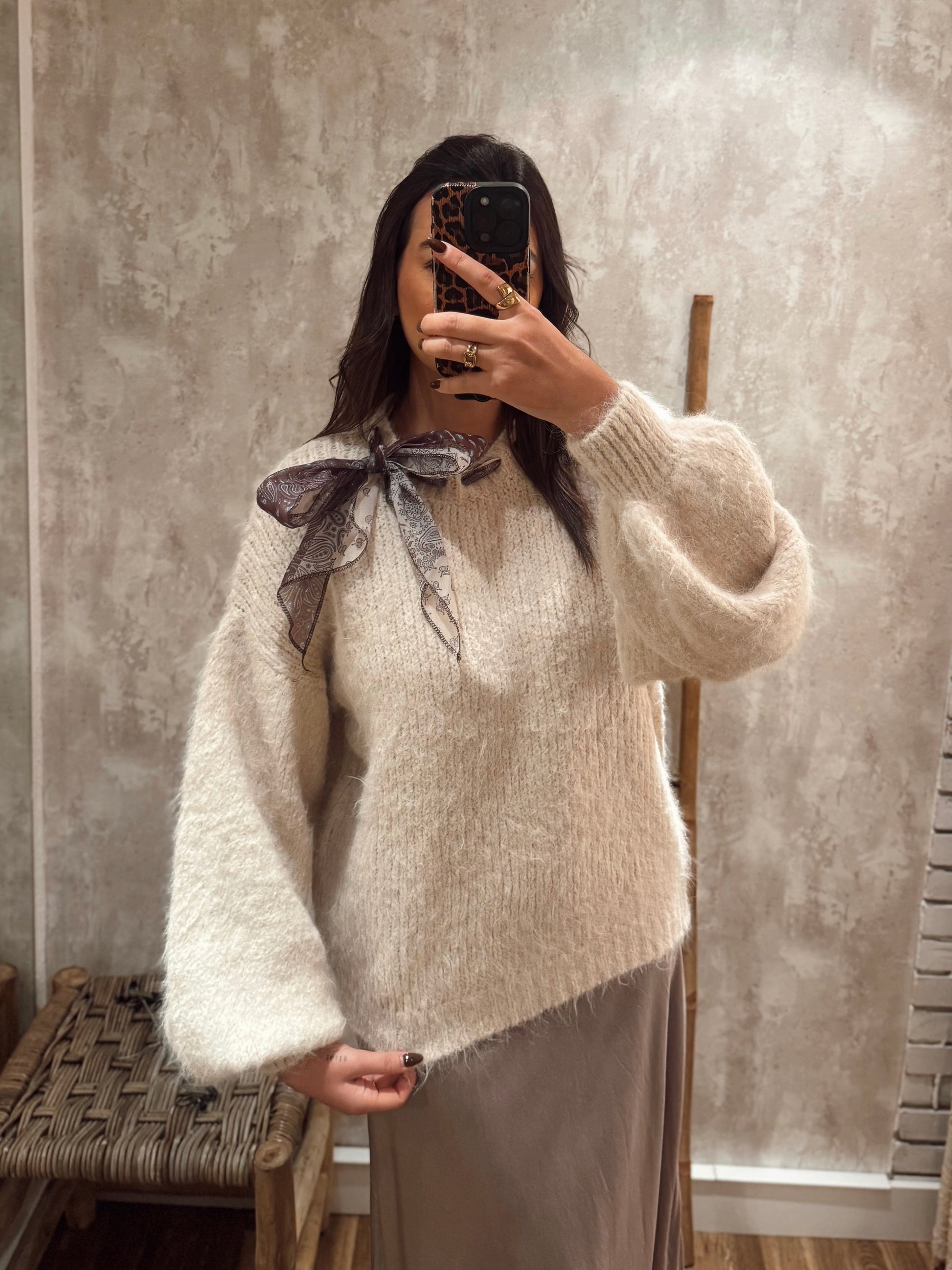 Camisola em malha grossa e macia, com corte oversize que garante conforto e um ar descontraído.