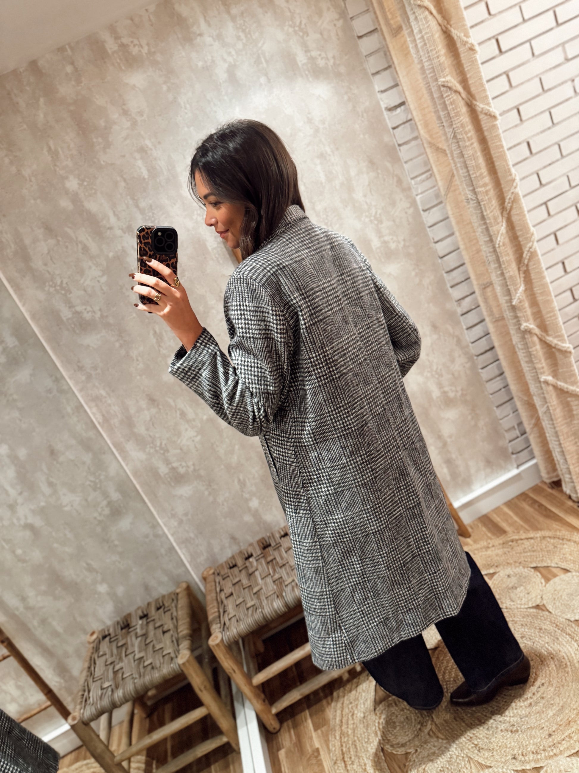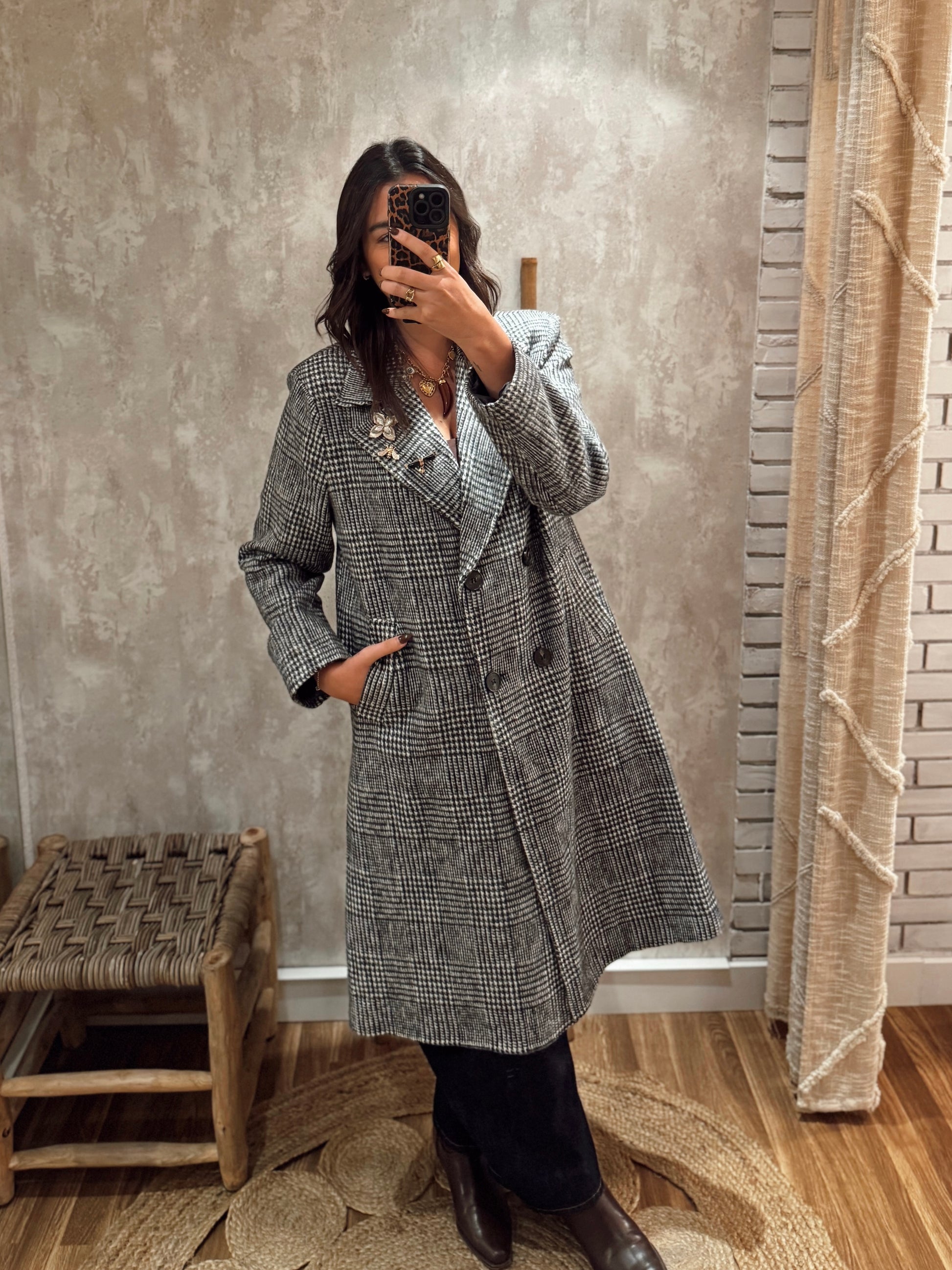 Apresenta abotoamento duplo, bolsos laterais e gola marcada, perfeito para um look sofisticado e intemporal.