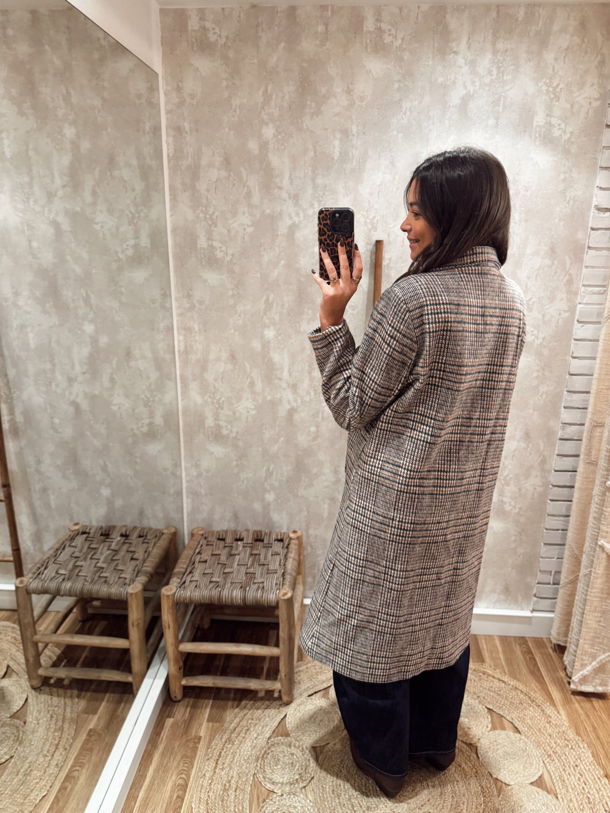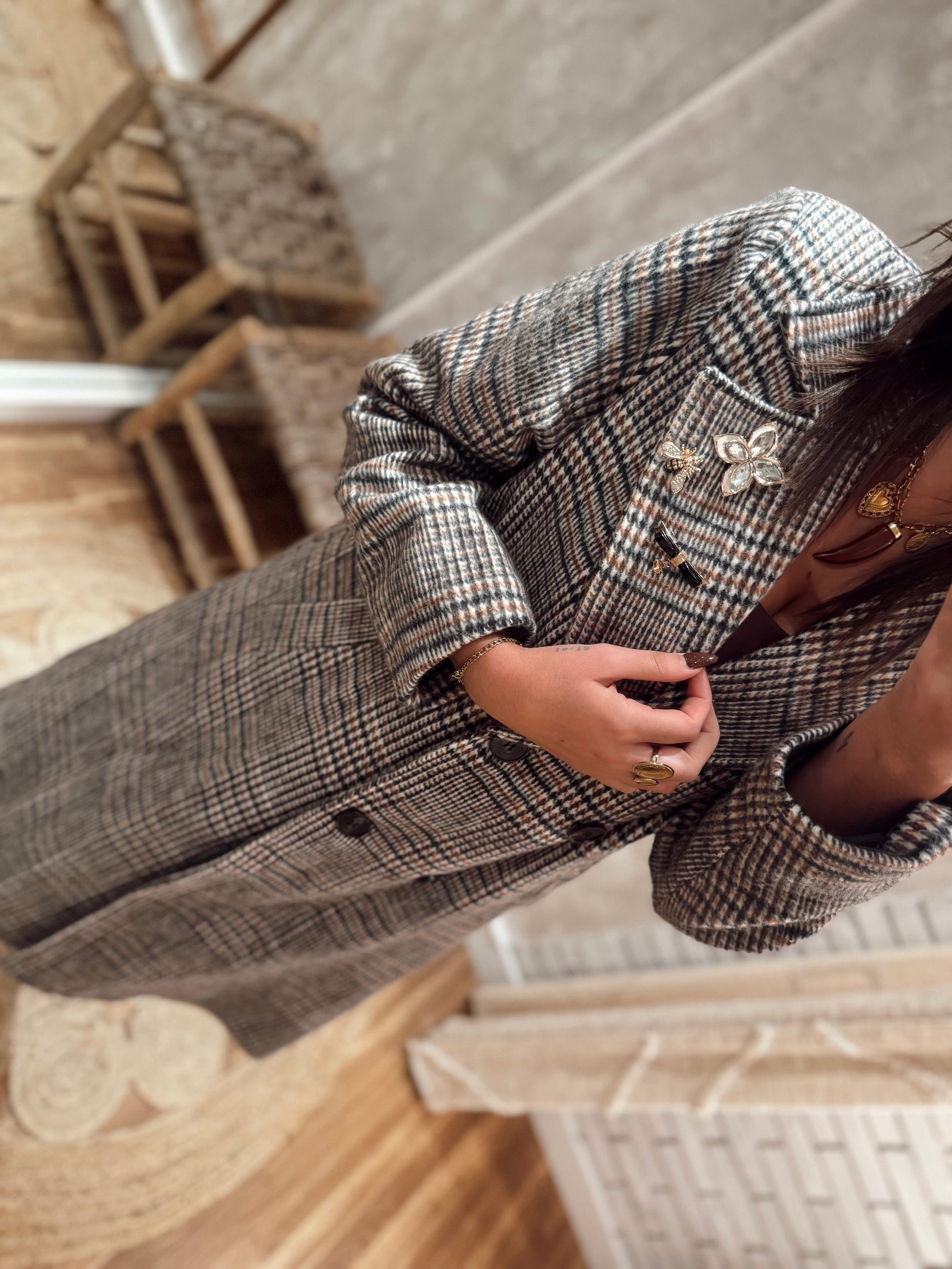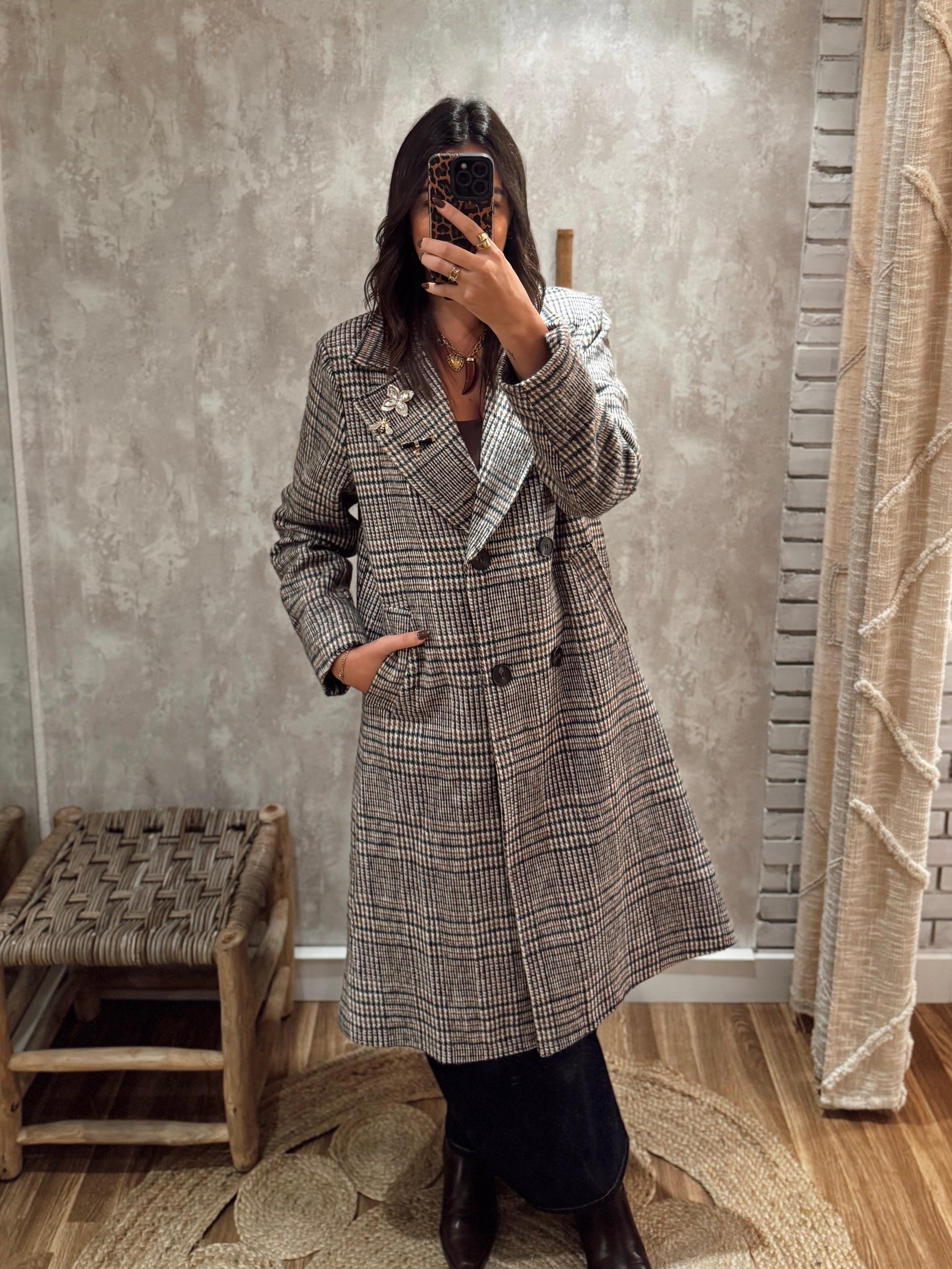 Apresenta abotoamento duplo, bolsos laterais e gola marcada, perfeito para um look sofisticado e intemporal.