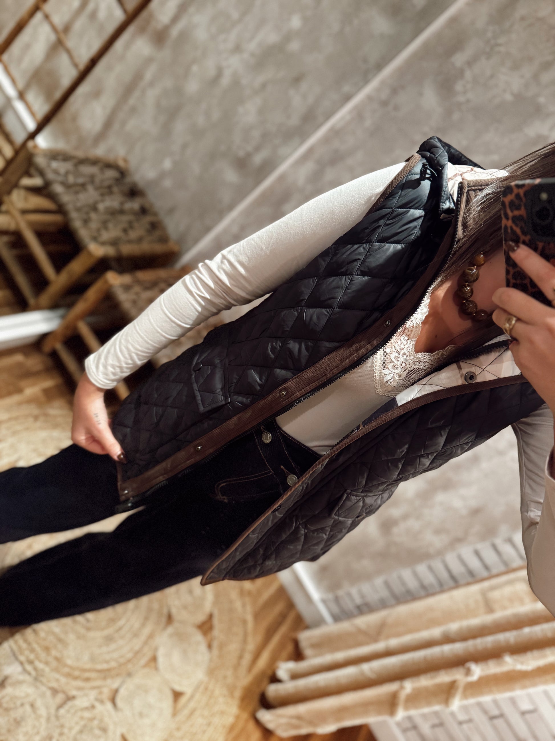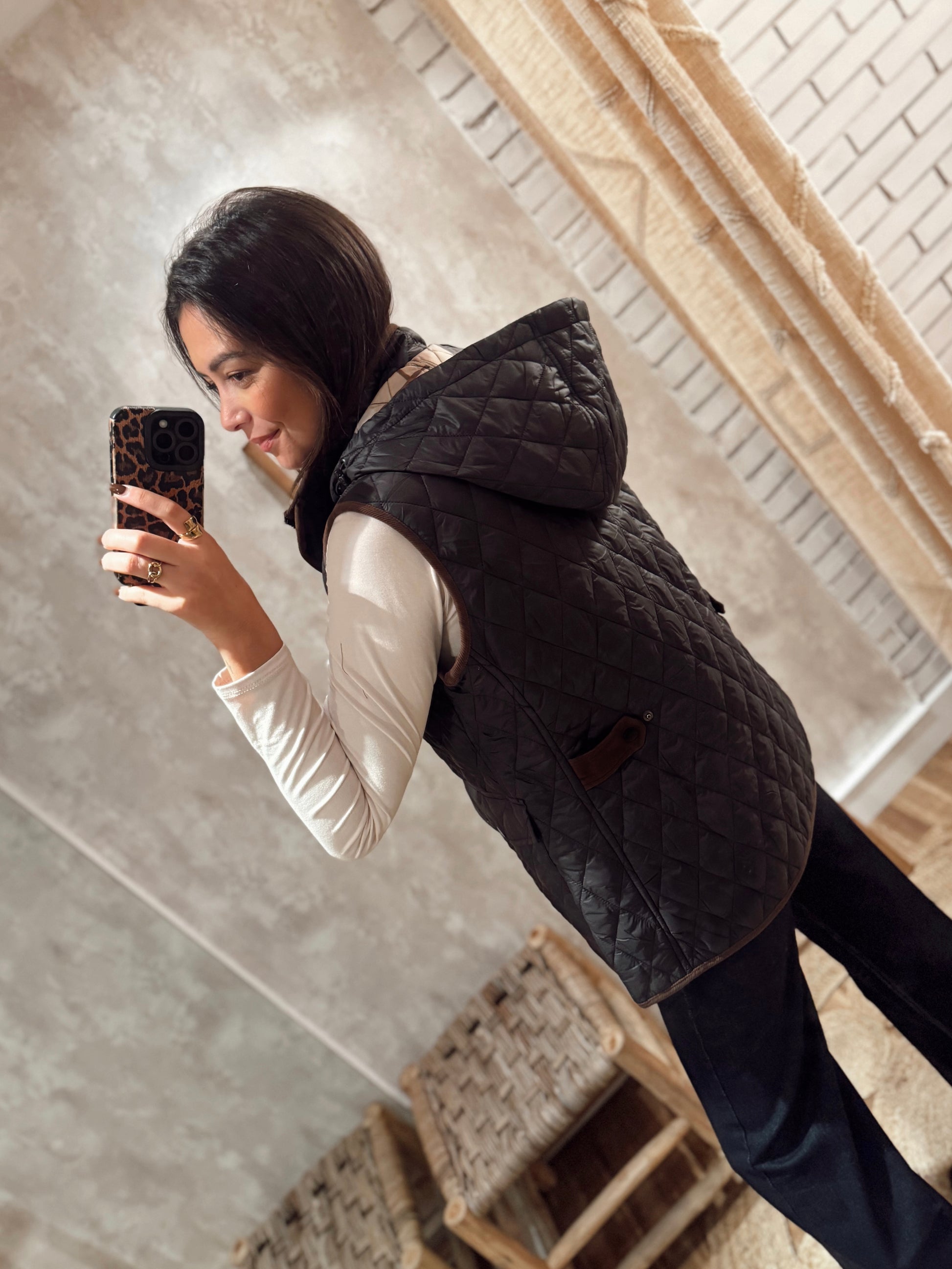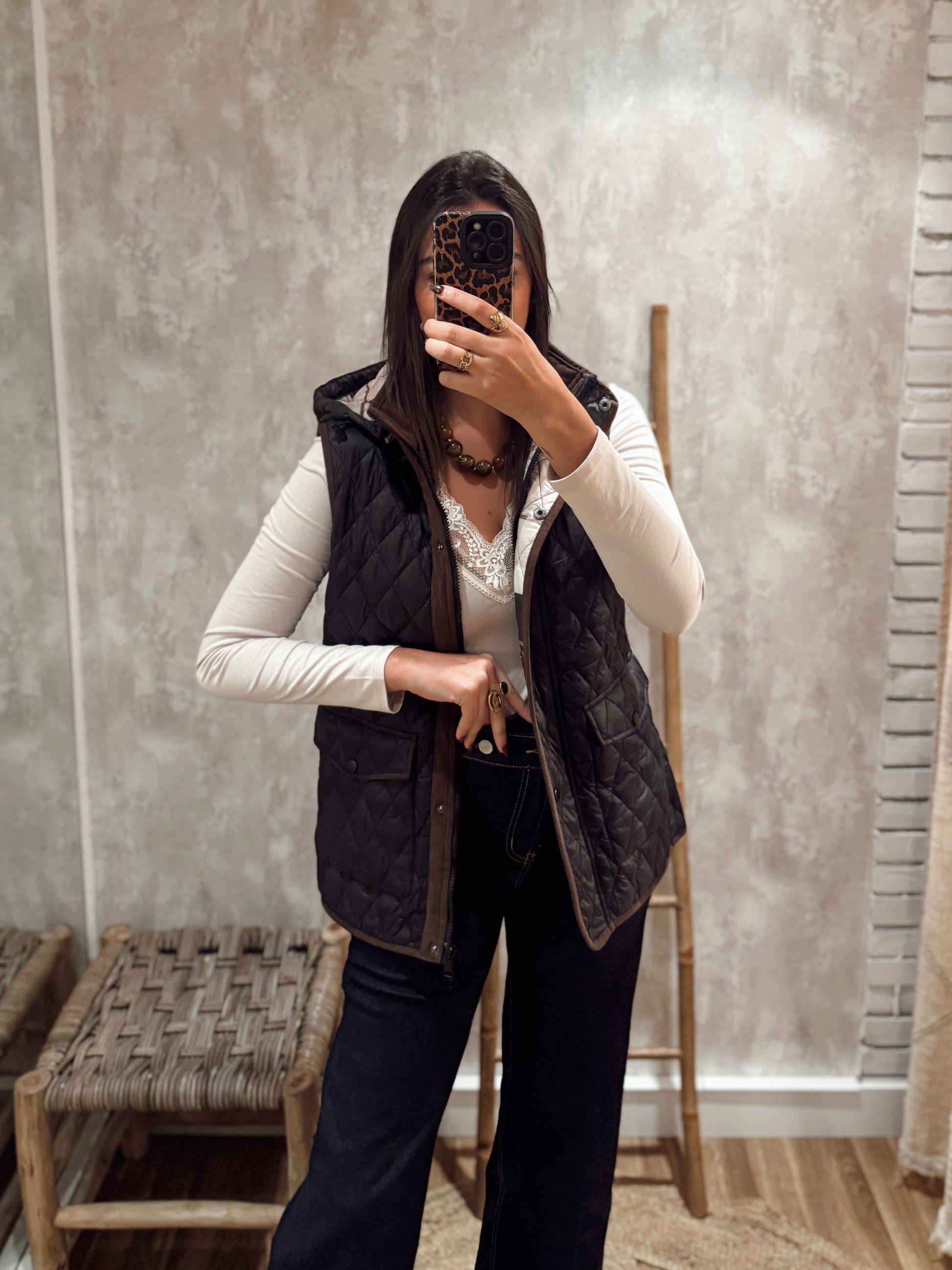 Colete acolchoado em tecido impermeável, leve e confortável. Apresenta fecho frontal com molas, bolsos funcionais e capuz com delicado padrão tipo xadrez no interior, que adiciona um toque distinto e elegante. Perfeito para sobrepor em looks de dia-a-dia e manter o estilo nos dias mais frescos. Disponível em bege, castanho e preto.